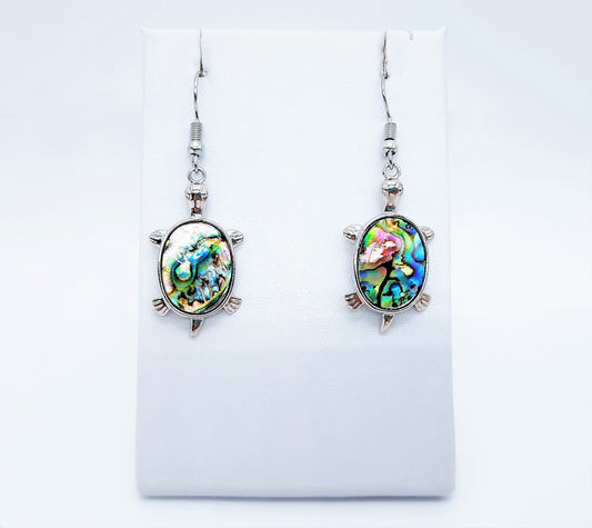 Abalone / Paua Seashell Sea Turtle Dangle Earrings