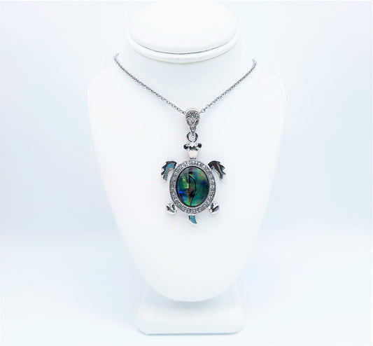 Abalone / Paua Seashell Sea Turtle Pendant Necklace