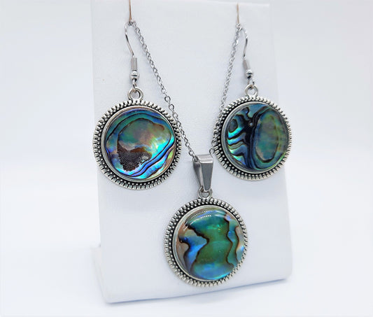 Abalone / Paua Seashell Tibetan Style Pendant Necklace & Earring Set