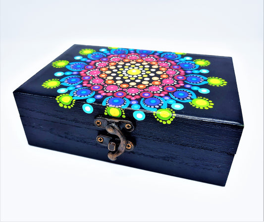 Handpainted Rainbow Dot Mandala Keepsake / Jewelry / Trinket Box