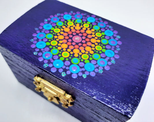 Mini Handpainted Rainbow Dot Mandala Keepsake / Jewelry / Trinket Box