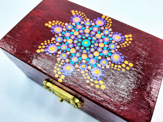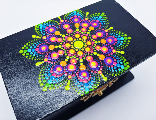 Handpainted Rainbow Dot Mandala Keepsake / Jewelry / Trinket Box