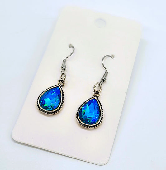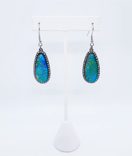 Opal (like) Blue Green Sparkle Teardrop Earrings