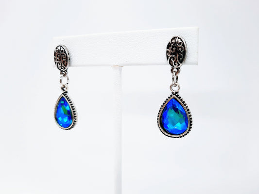 Antiqued Silver Teal Blue Earrings