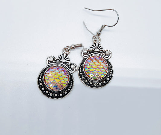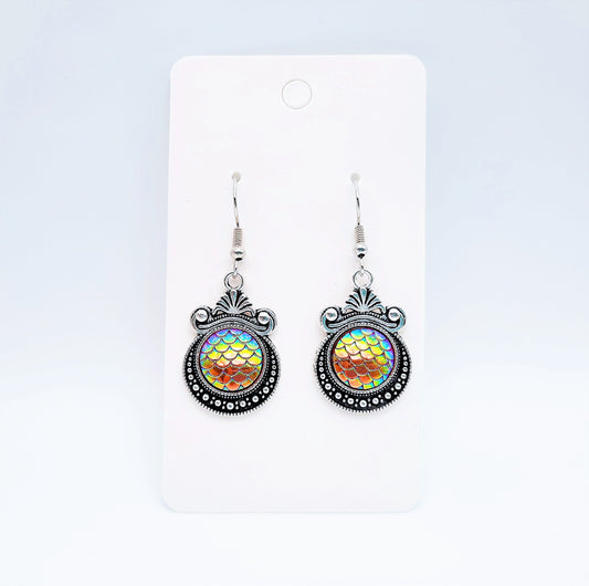 Iridescent Mermaid Scale Tibetan Earrings