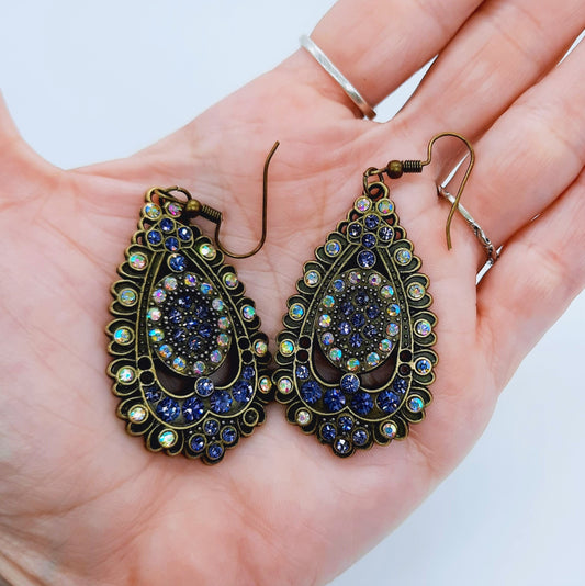 Antiqued Bronze Aurora Borealis & Purple Earrings