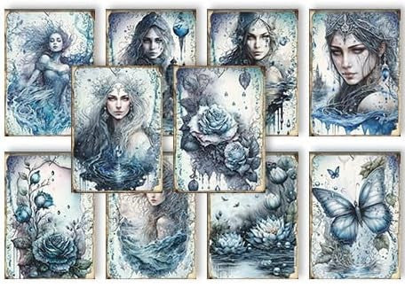 Ice Blue Witches - Set of 10 4" x 6" Decoupage Wood Panels