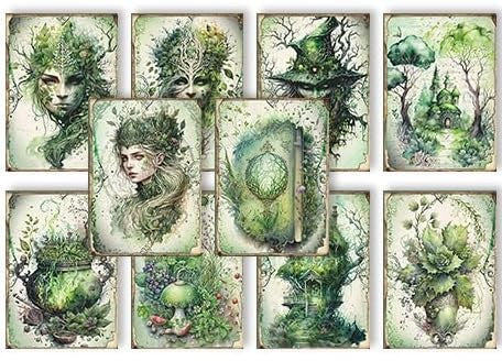 Forest Green Witches-Set of 10 4 "x 6" Decoupage Wood Panels