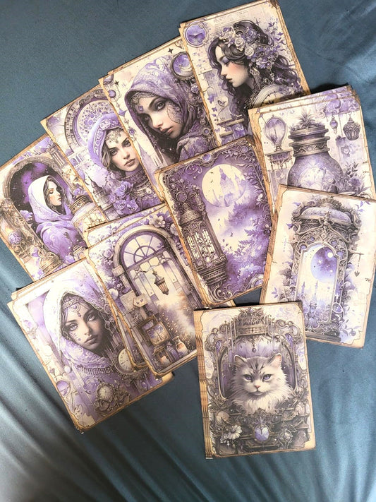 Purple Witches - Set of 10 4" x 6" Decoupage Wood Wall Panels