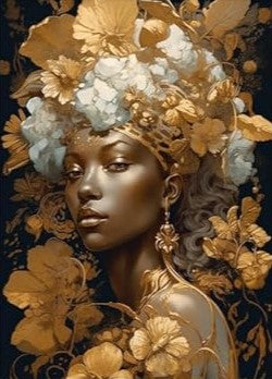Golden African Queens - Set of 5 Decoupage Wood Wall Panels