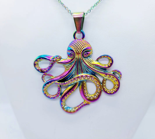 Rainbow Chromium Octopus Necklace