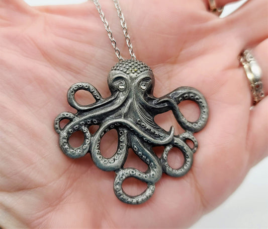 Antique Silver Metal Octopus Necklace