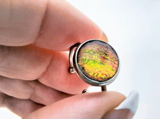 Iridescent Druzy Stainless Steel Ring - Adjustable