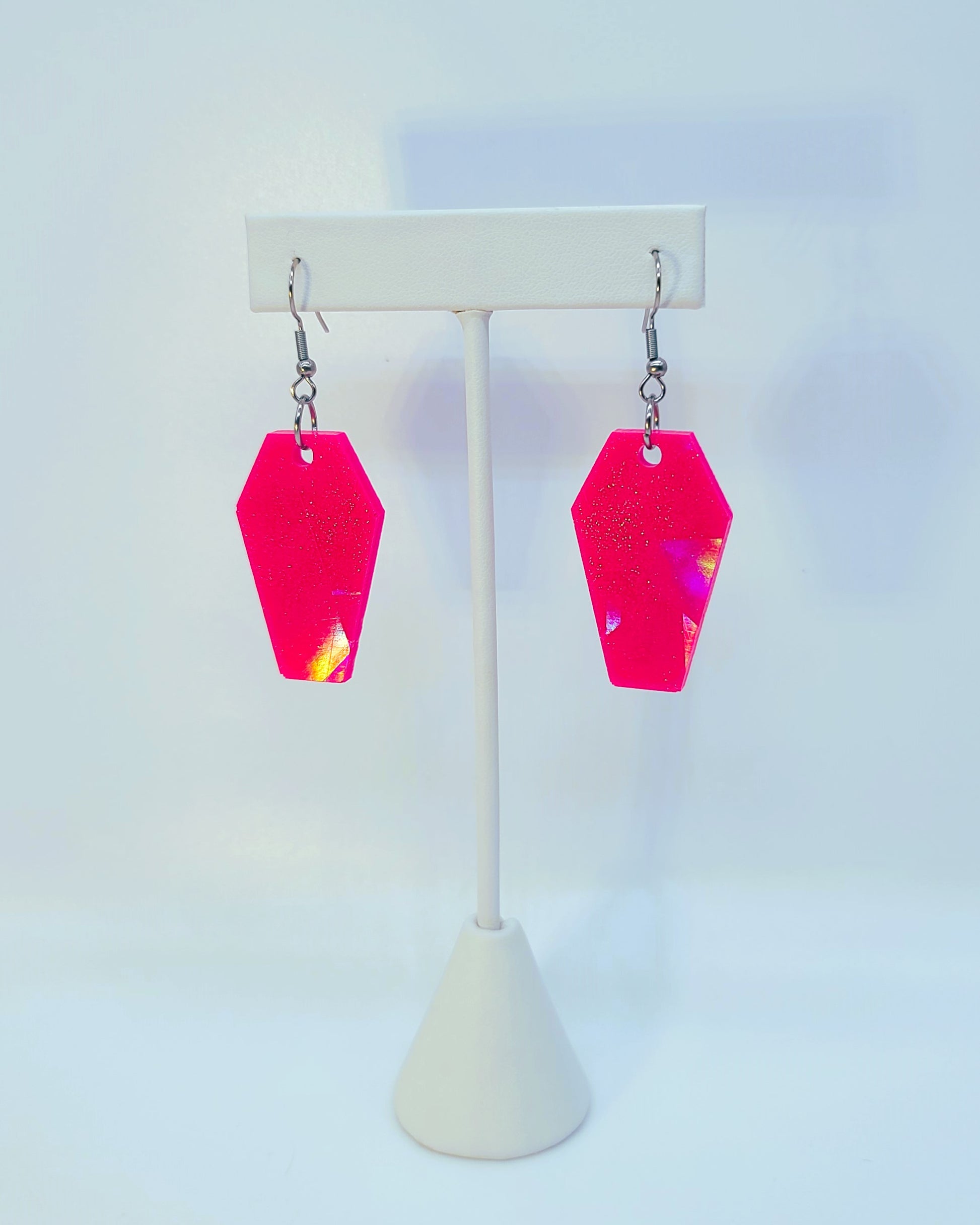 Holographic Halloween Coffin Earrings - Eco-Friendly Resin